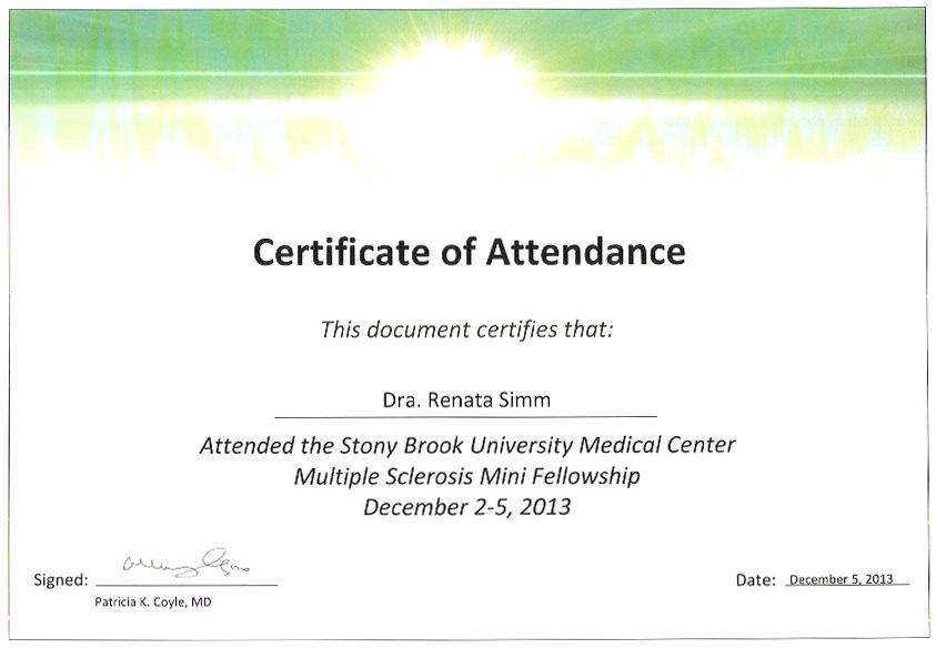 Certificate of Attendance Attended the Stony Brook Uuniversity Medical Center Multiple Ssclerosis Mini Fellowship
